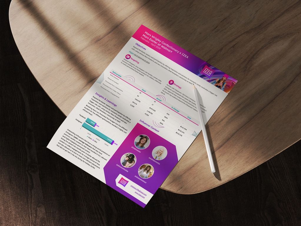 Challenge: Design a vibrant, youth-oriented presentation to summarize influencer marketing campaign results for IZEA, appealing to both brand managers and internal stakeholders.
